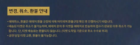 단, 공연 당일 티켓 교환 및 환불은 불가능합니다.